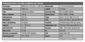 Bli den første til å omtale «Talaria Komodo TL6000 (MX Cross)»